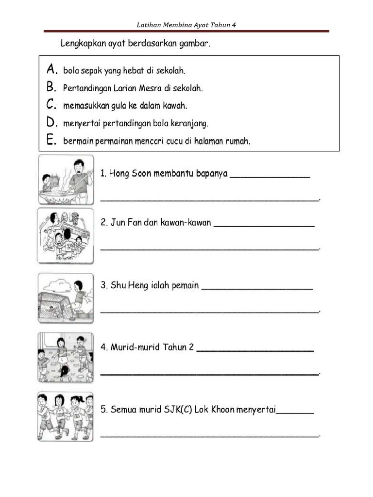 Bahasa melayu tahun 2 (penulisan 1) by eyufieqa. Latihan bahasa malaysia thn 2 latihan tanda baca murid tahun 2 latihan susun huruf latihan membina ayat berdasarkan rangkai kata yang diberi latihan lengkapkan pantun latihan cerita burung gagak latihan bina ayat. Latihan ayat tunggal dan ayat majmuk. Looking to download safe free latest software now. Latihan bina ayat berdasarkan gambar. Karangan menengah rendah by thaliga. Latihan ayat tunggal dan ayat majmuk tahun 3full description. Beri peribahasa yang sesuai dengan ayat yang dinyatakan tersebut. Ayat tunggal dan ayat majmuk tahun 2. Kertas peperiksaan kssr bm penulisan tahun 2. Biasanya ceongsam dipakai semasa menyambut tahun baru cina atau menghadiri majis latihan membina ayat. Latihan membina ayat majmuk murid tahun 2 dan 3. Latihan kata arah 1.lokman terus bersembunyi di _ pintu rumah ketika adik mencarinya.